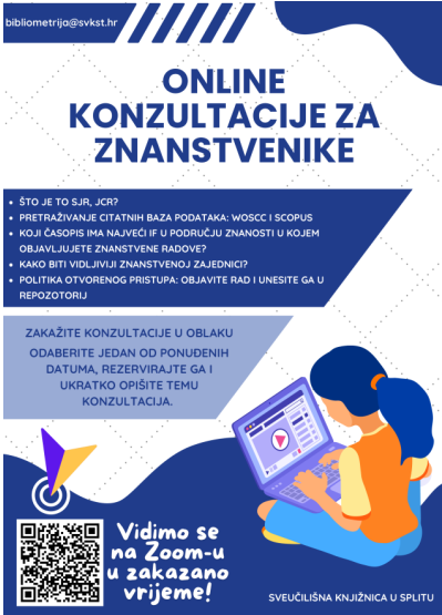 Sveučilišna knjižnica u Splitu nudi novu uslugu znanstveno-nastavnom osoblju Sveučilišta u Splitu – online konzultacije.