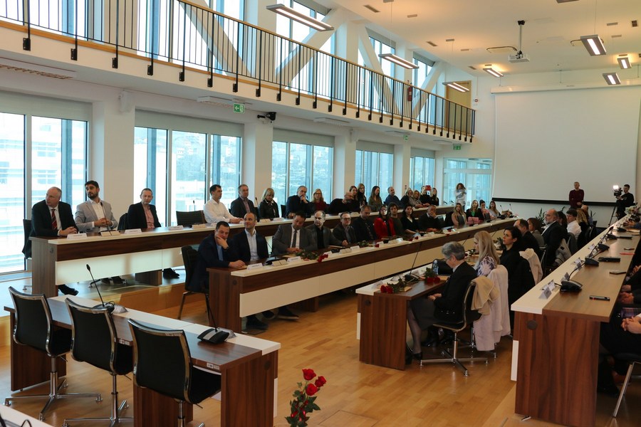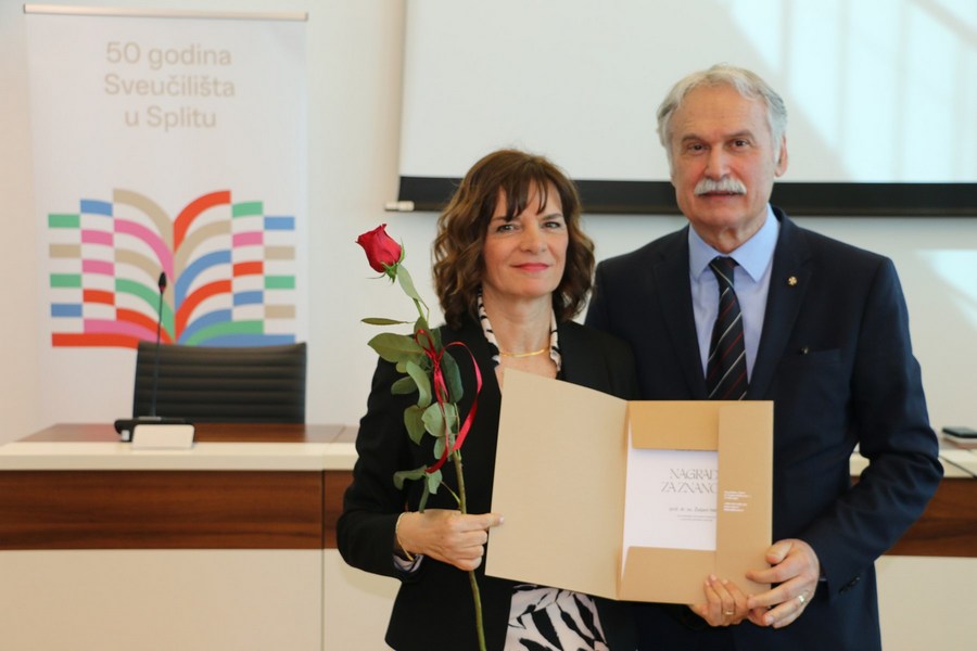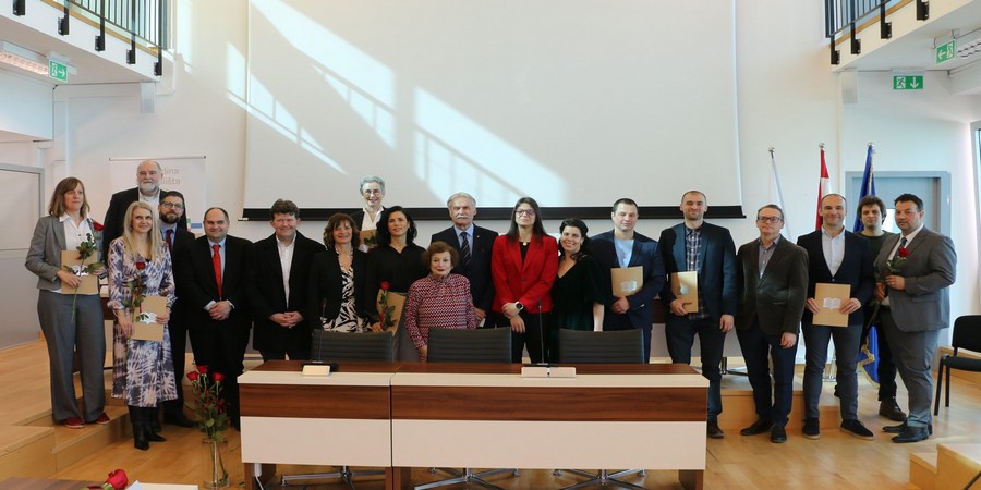 Svečana dodjela Nagrade za znanost Sveučilišta u Splitu za 2023. godinu najproduktivnijim znanstvenicima čiji je rad značajno pridonio vidljivosti i prepoznatljivosti našeg Sveučilišta, kako na europskom tako i na svjetskom nivou, održana je u utorak, 13. veljače u vijećnici Rektorata.
