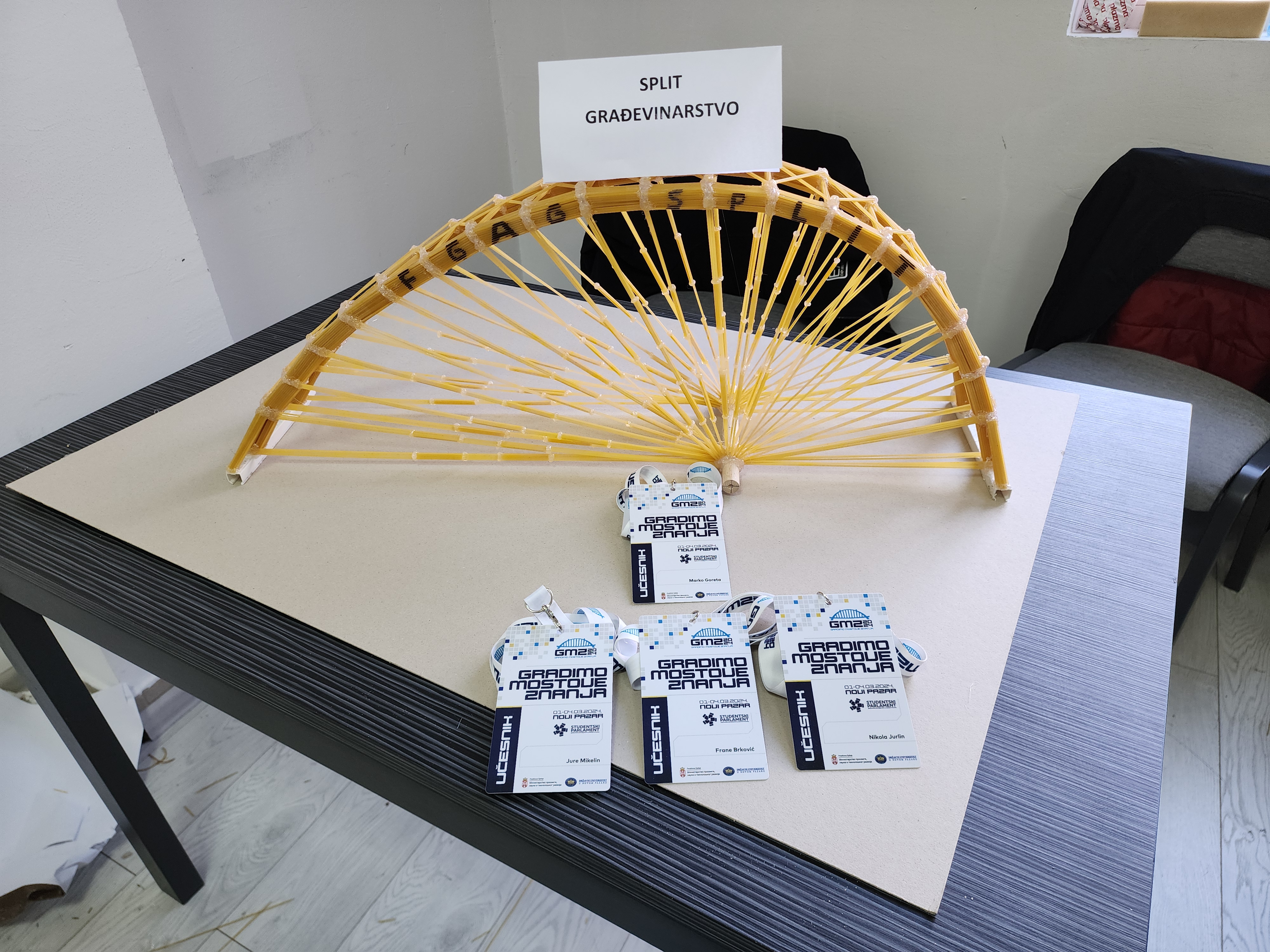 Studenti Fakulteta građevinarstva, arhitekture i geodezije u Splitu su od 1.- 4. ožujka 2024. sudjelovali na međunarodnom natjecanju "Gradimo mostove znanja" u izradi mostova od špageta koje se održalo šesti put zaredom u Novom Pazaru.