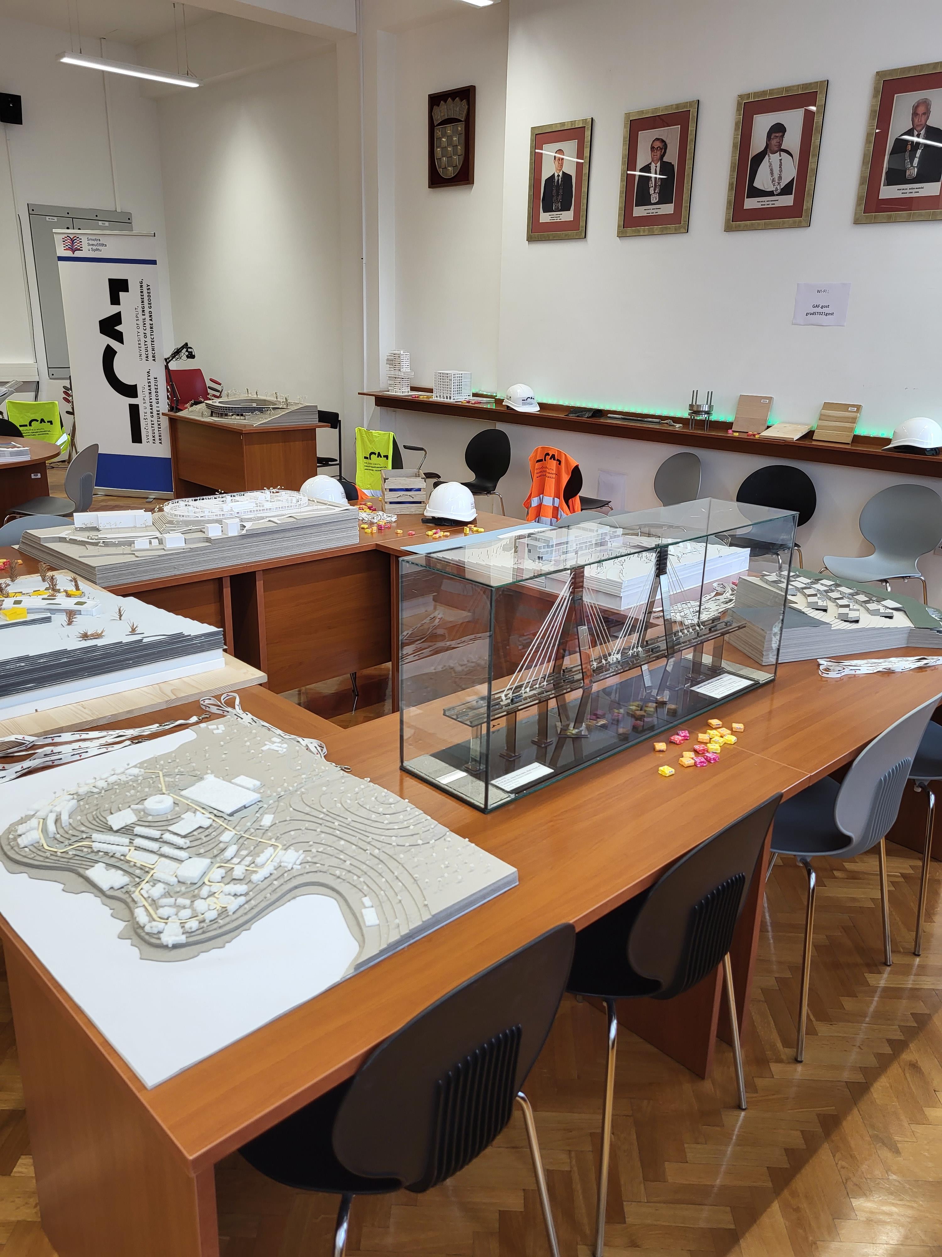 U sklopu Festivala znanosti Split 2024, 22. i 23. travnja na Fakultetu građevinarstva, arhitekture i geodezije u Splitu organizirana je izložba pod nazivom “Inteligencija oblikovanja prostora”. Kako možemo inteligentno oblikovati prostor i kako izgledaju naše svakodnevne uloge u tom prostoru? Sva ova pitanja samo su dio inteligencije promišljanja oblikovanja prostora. U našoj izložbi uveli smo posjetitelje u svijet procesa kreiranja inteligentno oblikovanih prostora. Ovakvi prostori su rezultat sinergije različitih ideja, timskog rada, korištenja održivih materijala i energetski efikasnih rješenja, koje su nam donijele znanost i razvoj novih tehnologija. Izložbu su održali: glavni voditelj doc. dr. sc. Ana Kadić i su- voditelji Samanta Bačić, mag. ing. geod. et geoinf., Domagoj Bendić, mag. ing. aedif.,doc. dr. sc. Nives Brajčić Kurbaša, Majda Ćesić, mag. ing. geod. et geoinf., Bruna Lukšić, mag. ing. arch., doc. dr. sc. Sanja Matijević Barčot, doc. dr. sc. Mijo Nikolić, doc. dr. sc. Katarina Rogulj, doc. dr. sc. Ivan Banović, Marina Tavra, mag. ing. geod. et geoinf., doc. dr. sc. Marina Nikolić, izv. prof. dr. sc. Ivan Balić, izv. prof. dr. sc. Nikola Grgić. Petra Šimundić, mag. oec..