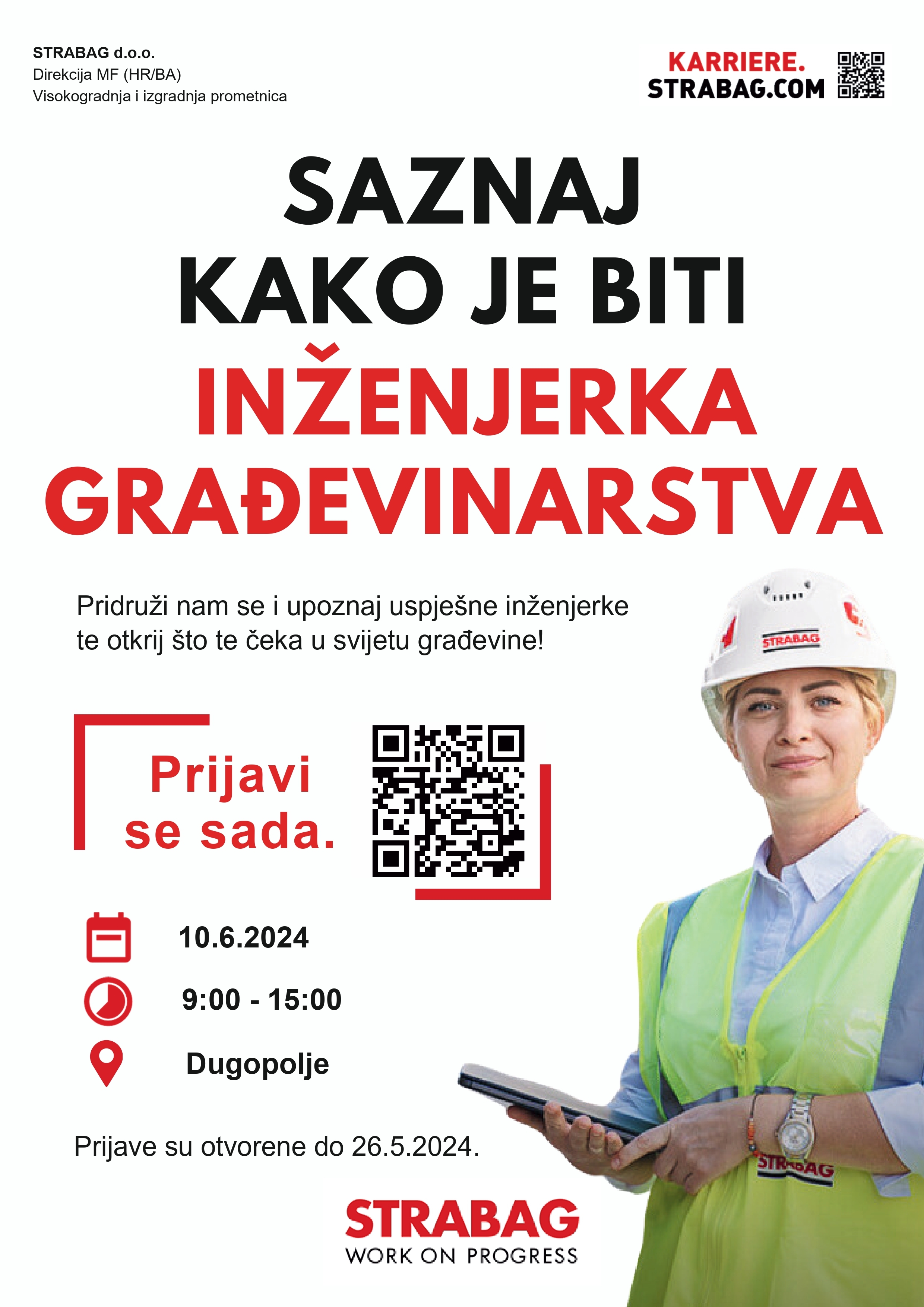 - Upoznavanje s tvrtkom STRABAG, velikim projektima i mogućnostima zapošljavanja.
