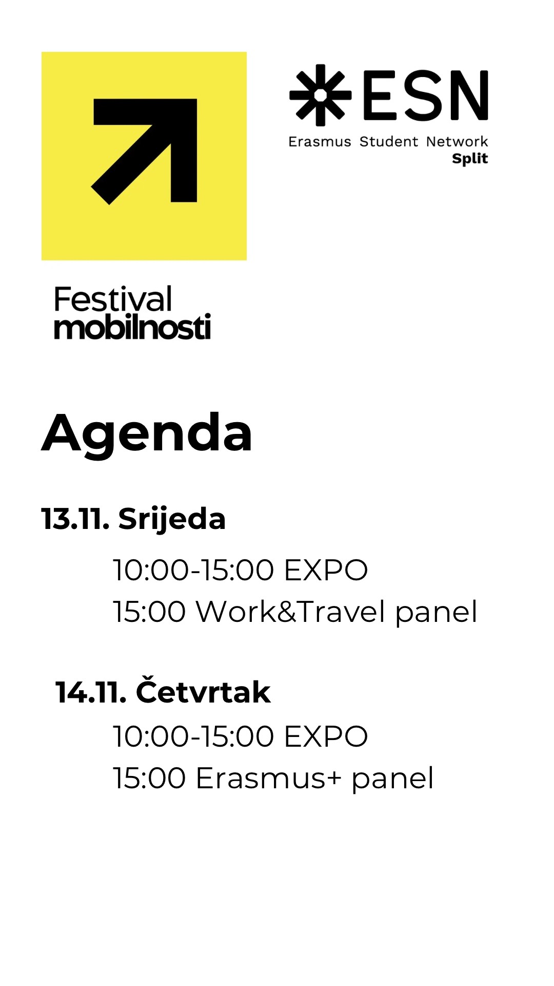 ESN Split u suradnji sa Sveučilištem organizira drugi Festival mobilnosti u okviru kojeg će se sutra, četvrtak 14. studenog 2024., s početkom u 15 h, na PMF-u, dvorana B3-68, održati panel za osoblje u kojem će kolegice Franka Babić i Ivana Bakotin podijeliti svoja iskustva prijave i odlaska na mobilnost.