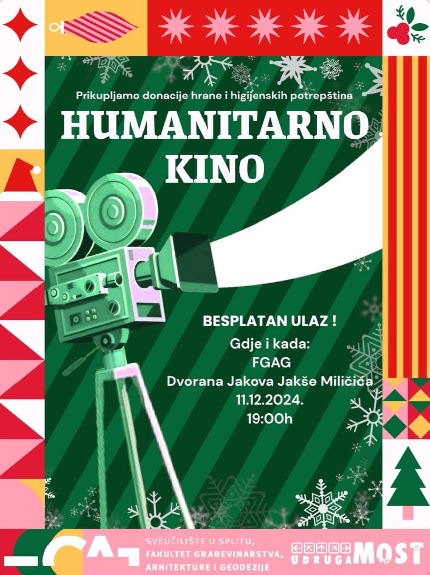 Studentski zbor FGAG u sada već višegodišnjoj suradnji sa splitskom @udruga_most, koja skrbi i brine o beskućnicima i nezbrinutim osobama, te uz podršku Uprave FGAG-a donosi zajednički svima nam dragi i omiljeni projekt jedinstven na našem Sveučilištu - HUMANITARNO KINO "SRCE FGAG-a" ❤