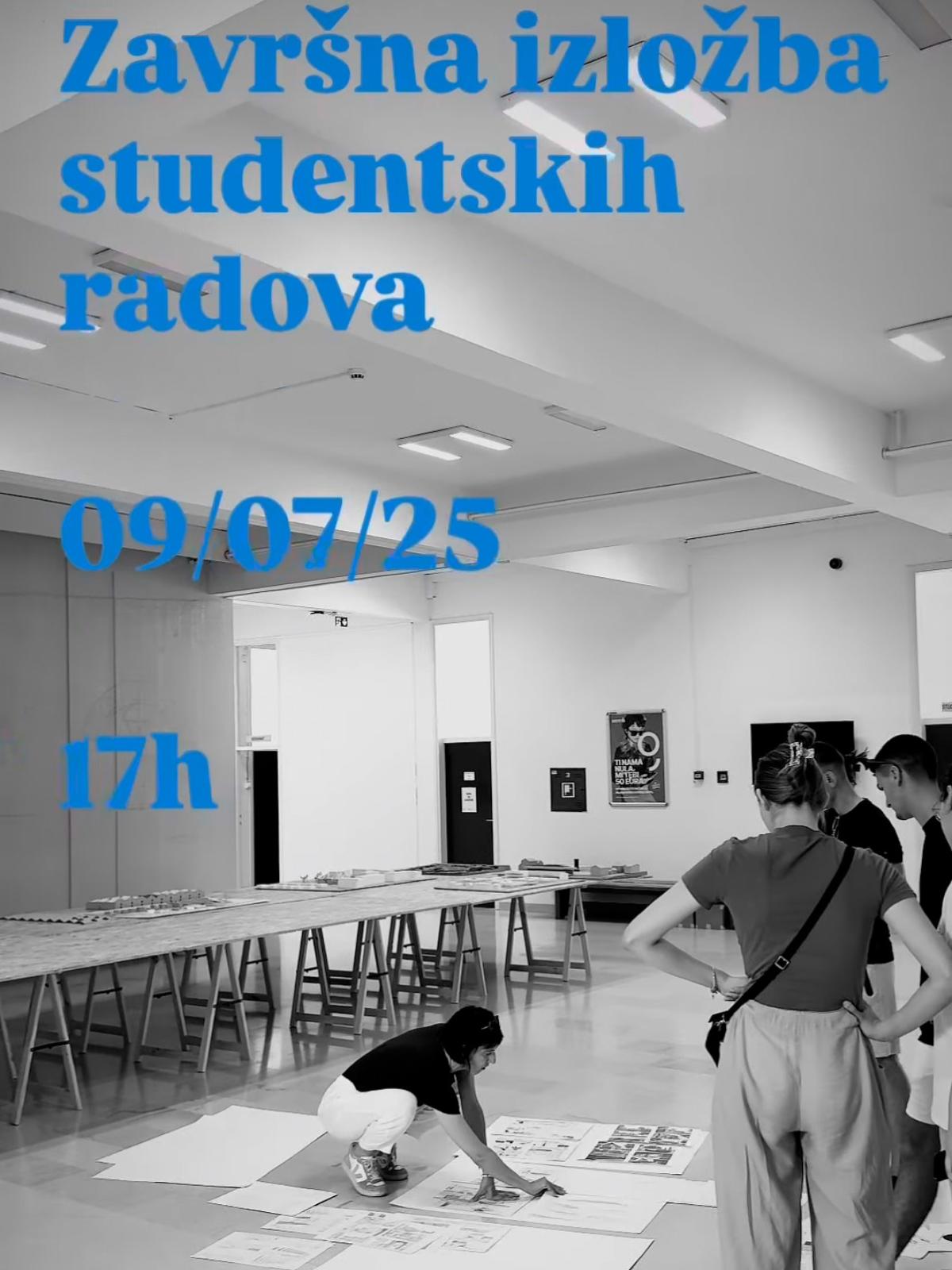 Pozivamo vas na otvorenje završne izložbe studentskih radova na studijima arhitekture i urbanizma koje će se održati 9.7. u 17 sati u holu Fakulteta. Izložba će biti otvorena do 17.7.