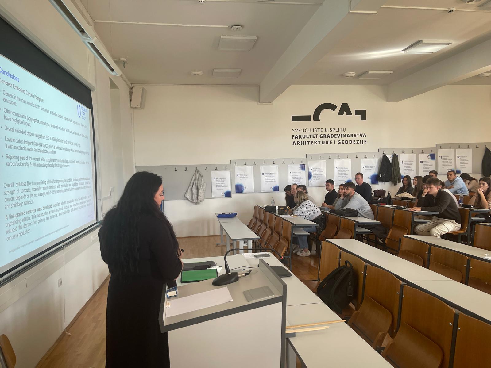 U utorak, 7. listopada 2025. godine, na Fakultetu građevinarstva, arhitekture i geodezije Sveučilišta u Splitu, održano je predavanje doktorandice Vilme Vaičekauskienė sa Vilnius Gediminas Technical University iz Litve, Faculty of Civil Engineering, Department of Building Materials and Fire Safety Engineering.