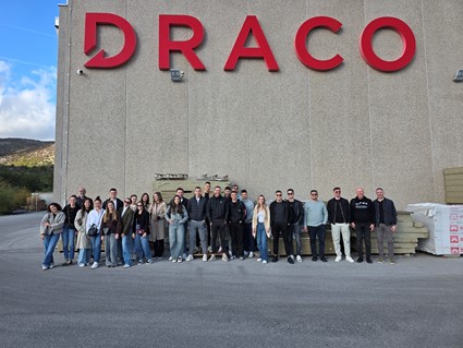 Dana 14. studenoga 2025. godine studenti treće godine stručnog prijediplomskog studija Građevinarstvo (kolegij Izvođenje građevinskih radova) i druge godine sveučilišnog diplomskog studija Građevinarstvo (kolegij Fizika zgrade) prisustvovali su terenskoj nastavi u proizvodnom pogonu tvrtke DRACO d.o.o. Solin u Muću, pod vodstvom prof.dr.sc. Borisa Trogrlića i izv.prof.dr.sc. Ivana Balića.